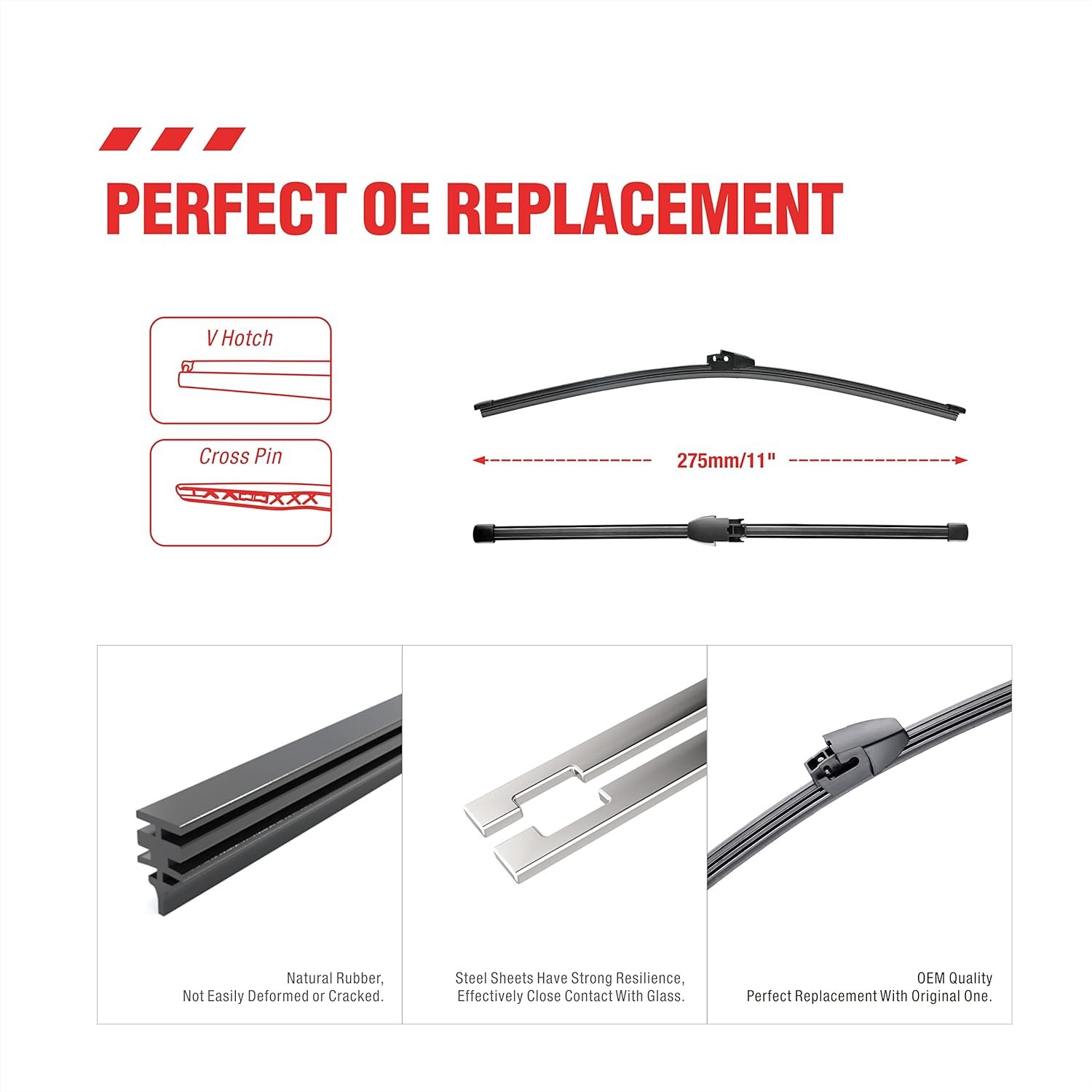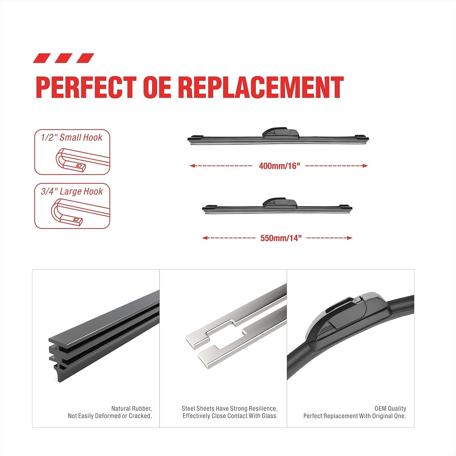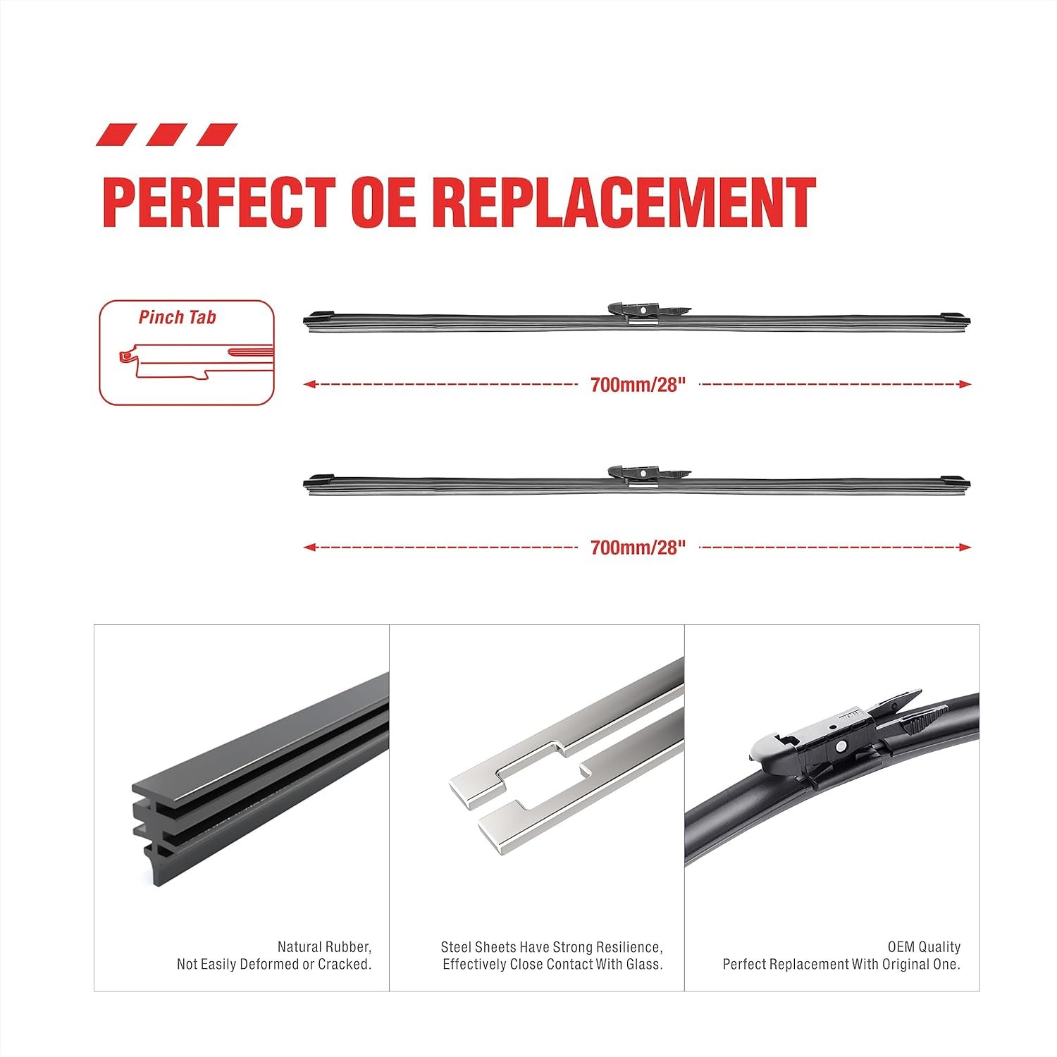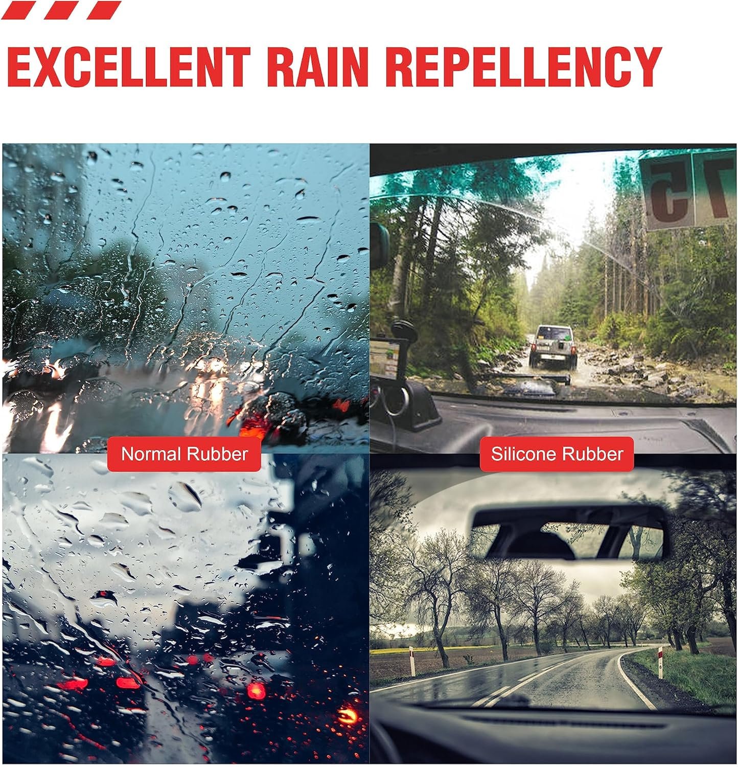 【Strong pulling force】 Silicone coated wipers have strong pulling force, making them more suitable for use at high speeds and better resistant to the impact of wind and rain weather.