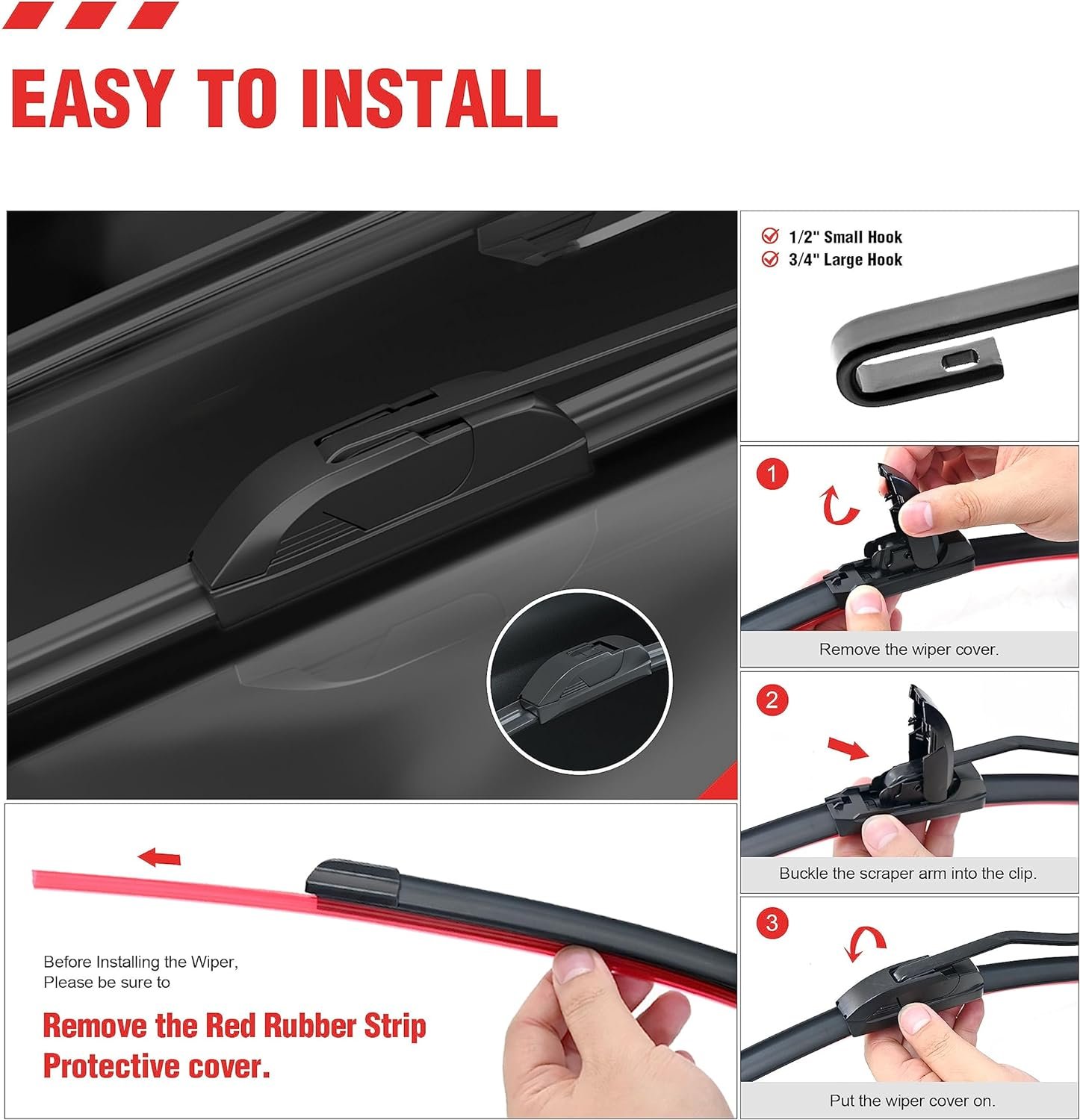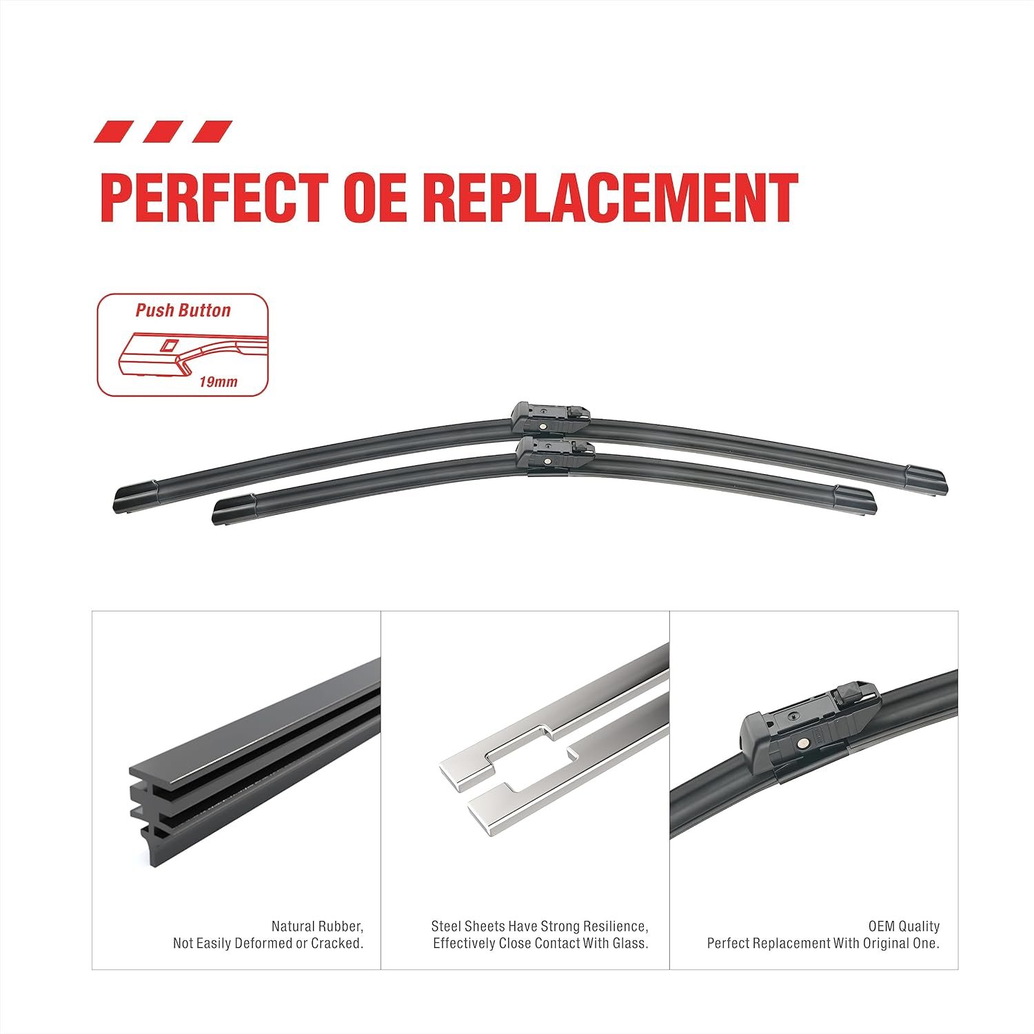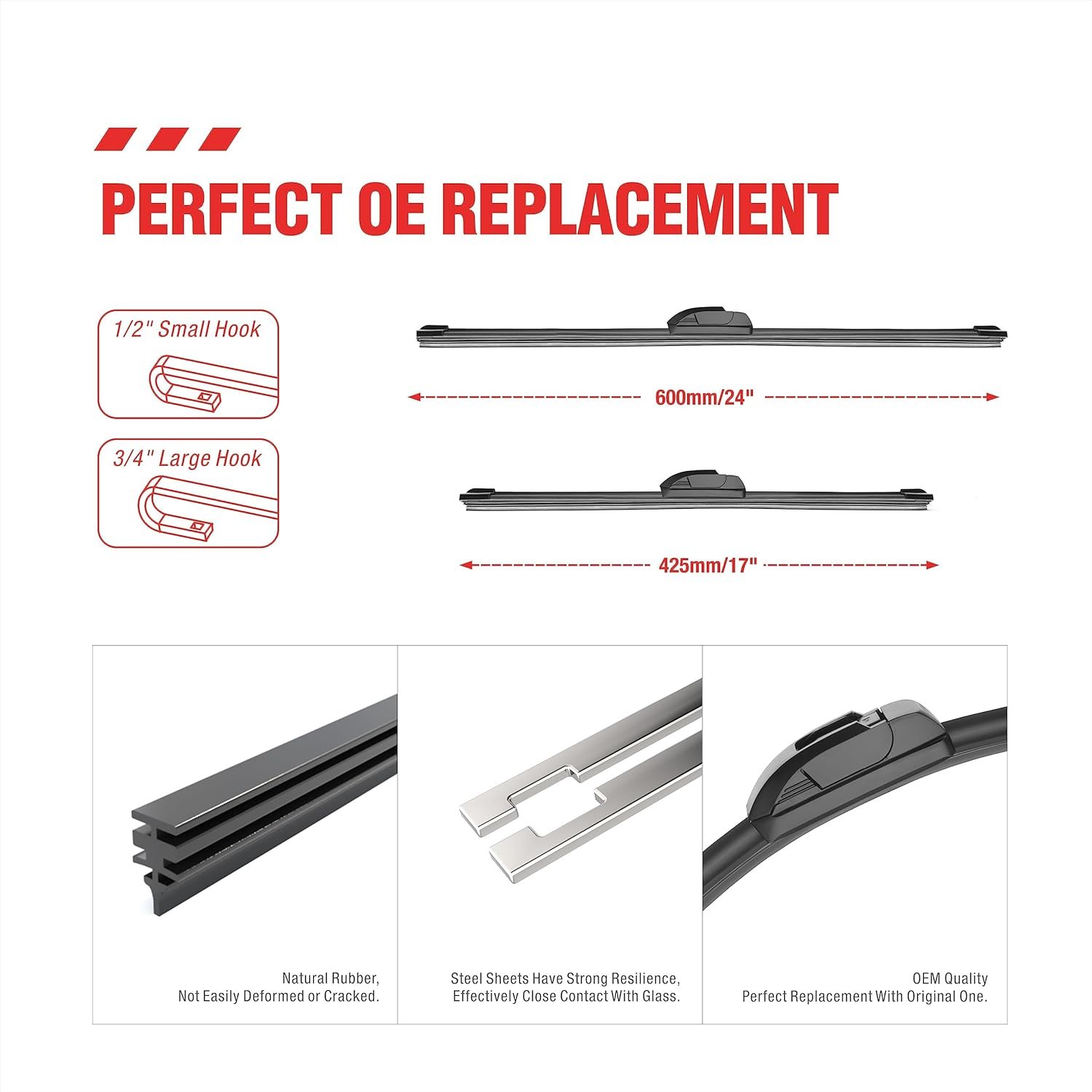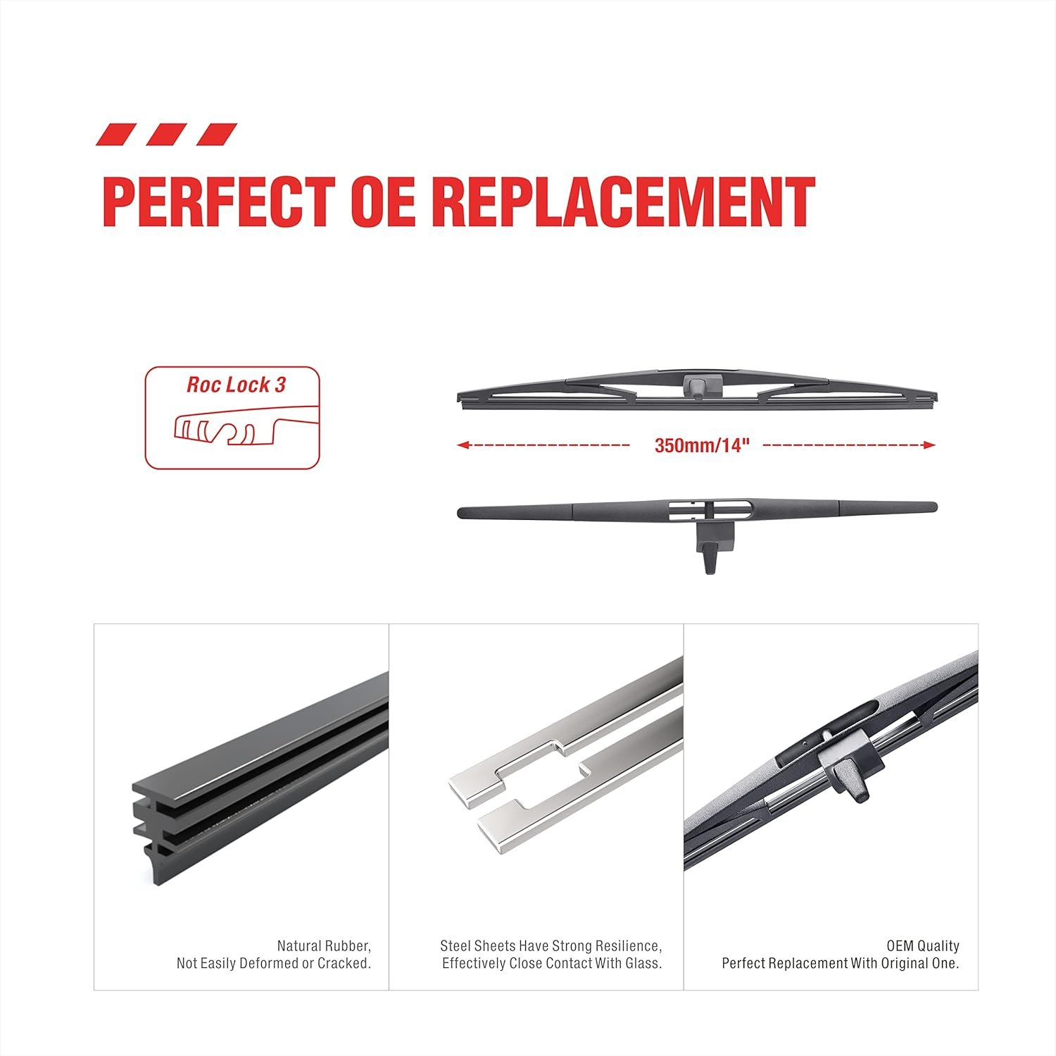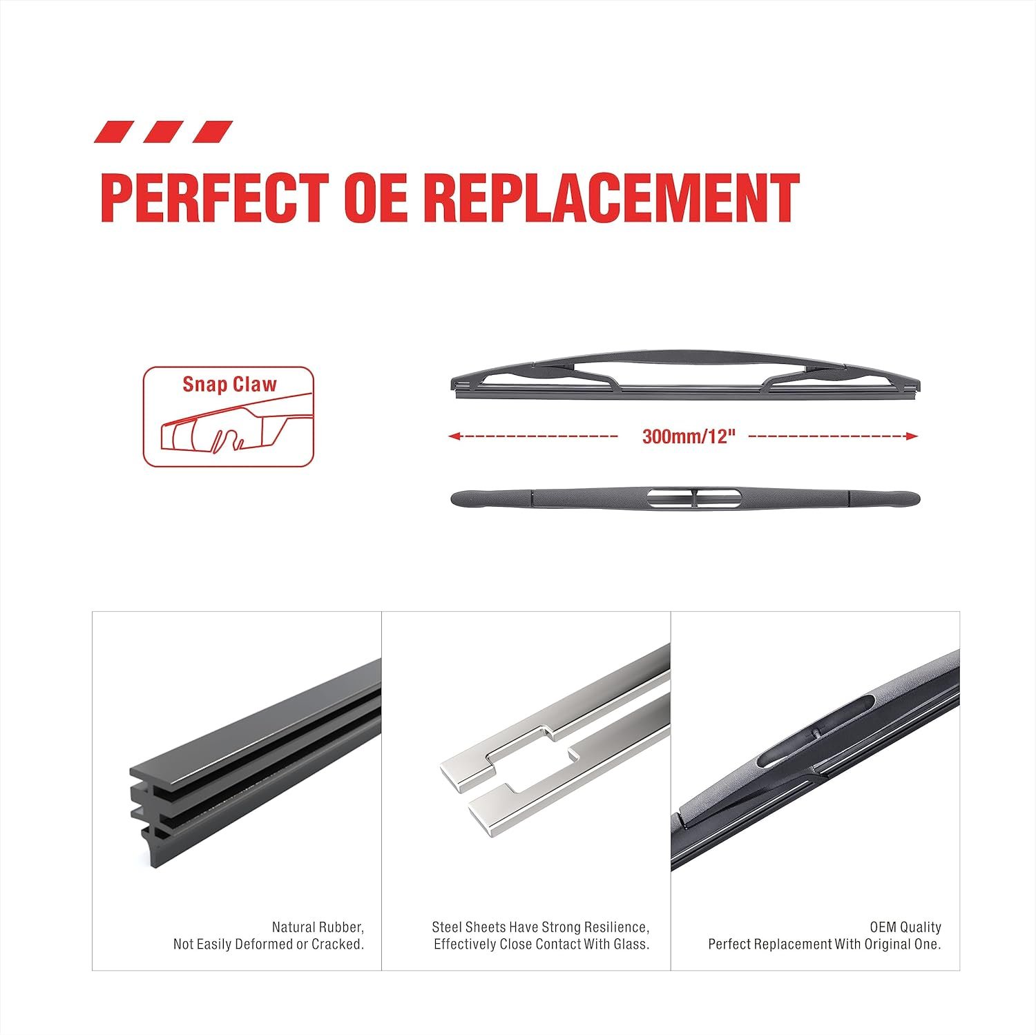 【Strong pulling force】 Silicone coated wipers have strong pulling force, making them more suitable for use at high speeds and better resistant to the impact of wind and rain weather.