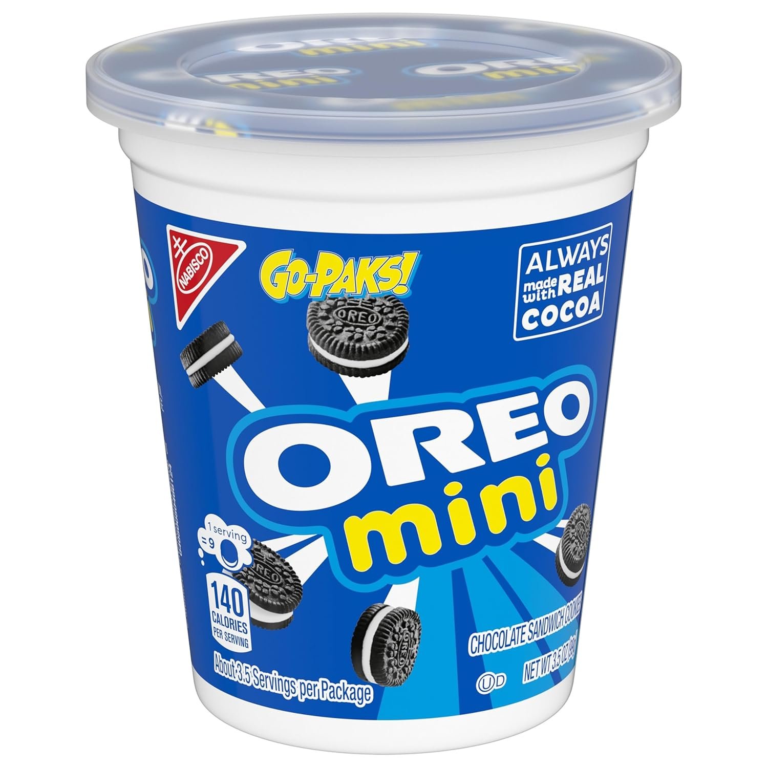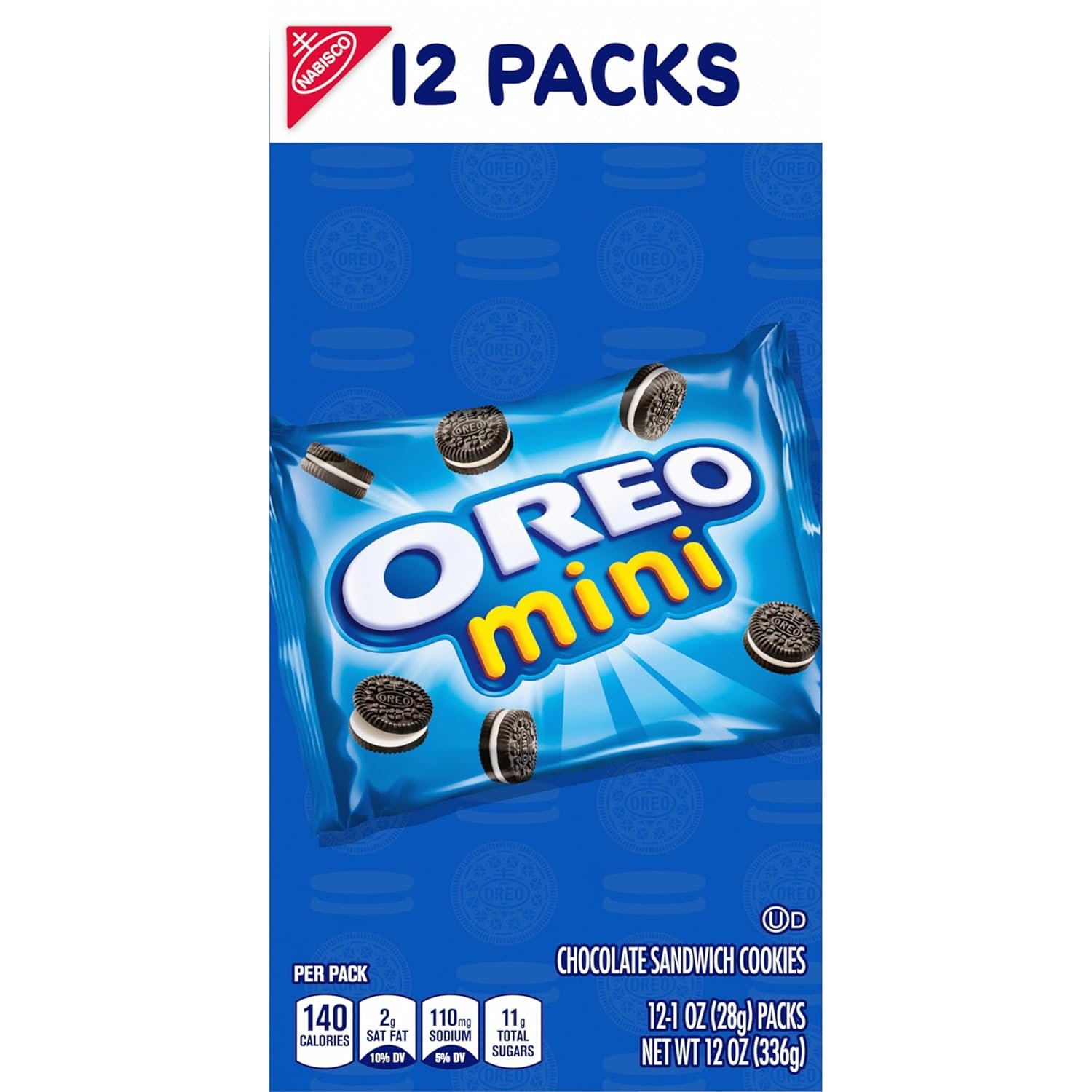 • Twelve 3.5 oz Go-Paks of OREO Mini Chocolate Sandwich Cookies packaging may vary